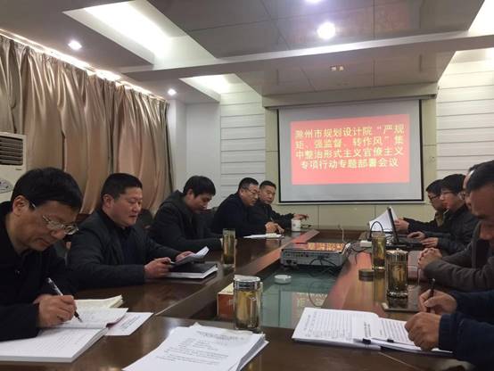 2019年3月14日下午,市規(guī)劃設(shè)計(jì)院召開“嚴(yán)規(guī)矩、強(qiáng)監(jiān)督、轉(zhuǎn)作風(fēng)”集中整治形式主義官僚主義專項(xiàng)行動(dòng)專題部署會(huì)議,院班子成員、各部門負(fù)責(zé)人及全體黨員參加了會(huì)議,會(huì)議由院黨支部書記、院長賀玉龍同志主持。