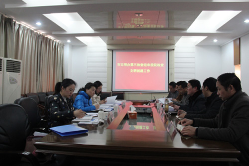 2月13日下午,市文明辦檢查組第三小組在領(lǐng)隊(duì)、市文明辦辦公室主任王曉群帶領(lǐng)下,對(duì)我院申報(bào)創(chuàng)建第十一屆市文明單位進(jìn)行檢查驗(yàn)收。檢查組首先聽(tīng)取了賀玉龍?jiān)洪L(zhǎng)代表我院所作的創(chuàng)建工作匯報(bào),隨后按照《第十一屆滁州市文明單位測(cè)評(píng)細(xì)則》對(duì)我院申報(bào)創(chuàng)建材料進(jìn)行了認(rèn)真的查驗(yàn),并對(duì)我院辦公及周圍環(huán)境進(jìn)行了實(shí)地查看。副院長(zhǎng)丁文軍、王士才、黃明華、袁家金和院文明創(chuàng)建領(lǐng)導(dǎo)小組辦公室主任季阿祥參加了匯報(bào)會(huì)。